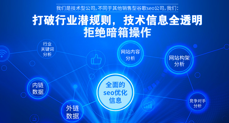 这类公司技术一般比较差,所以借谷歌官方的SEO指南里无法承诺排名、无法承诺效果的旗号“打假”其他谷歌优化公司,自己不给客户任何效果承诺,掩饰技术实力差的事实。实际上Google官方的“无法承诺”和实际操作中的效果承诺是有区别的。摊开来讲内容较多,细感兴趣的可以联系我们详聊。